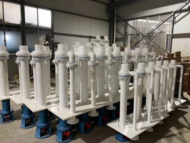 氟塑料液下泵的吸入口順為沿軸線方向的底部,出液口與軸線平行。