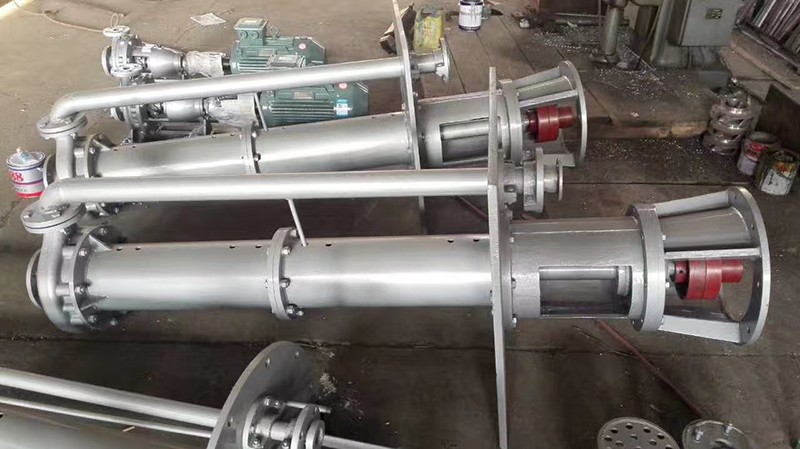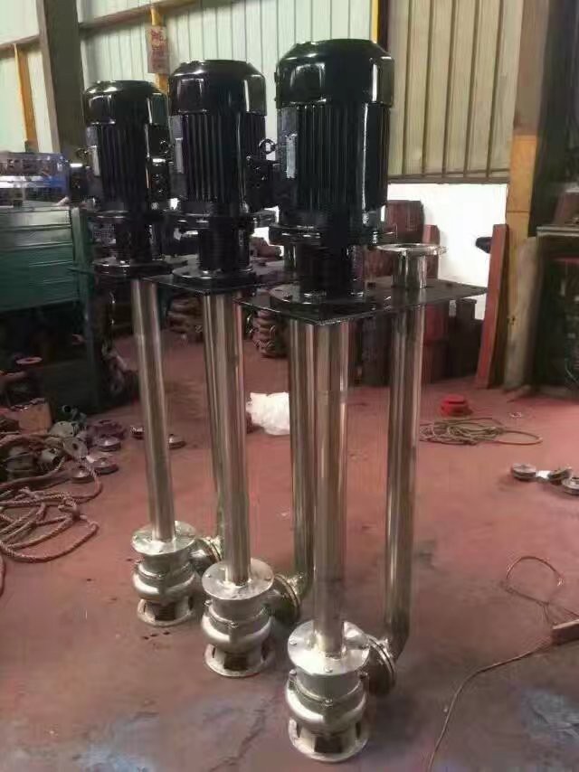 液下化工泵的形式為長(zhǎng)軸立式離心泵,與介質(zhì)接觸部分采用鑄鋼或不銹鋼制造,根據(jù)客戶要求液下深度由0.5m-6m不等,工作部分淹沒與液體中,具有使用范圍廣,效率高,無需灌液即能輸送,由于泵運(yùn)轉(zhuǎn)產(chǎn)生的軸向力及徑向力分別由液上部分的滾動(dòng)軸承和液下的滑動(dòng)軸承支撐,因此運(yùn)行寧靜無噪音,是集環(huán)保節(jié)能的高科技產(chǎn)品。